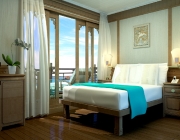 Executive: Located on the upper deck, The Au Co executive cabins at 20 square metrers each offer extensive views of the seascape during your cruise thanks to their floor-to-ceiling windows and glass doors. Their chic interiors and contemporary furnishings, including hardwood floors, handcrafted bed and tables, give a harmonious balance between modern design and traditional detailing.