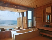 Ocean Front 3 Bedroom Villa (542 sq.m.): On the beachfront this vast three bedroom villa offers stunning views of the East Vietnam Sea. This villa has a spacious living area, dining room and kitchen. Two bedrooms offering ocean views and large open plan bathrooms with double vanity basins, bathtub and outdoor shower. Private pool and ‘lap pool’ with terrace. Satellite TV, DVD, Bose sounds and an i-pod docking station.